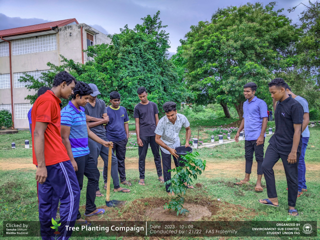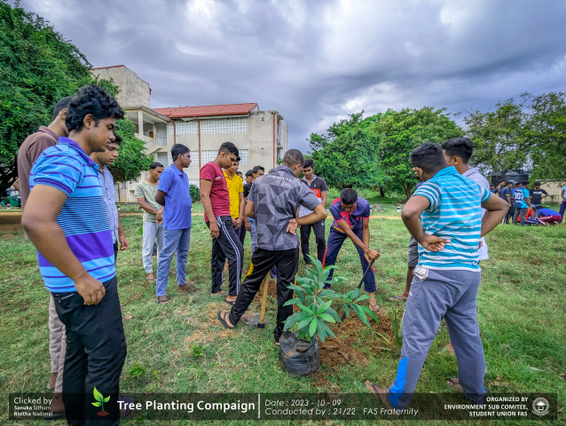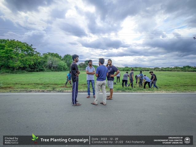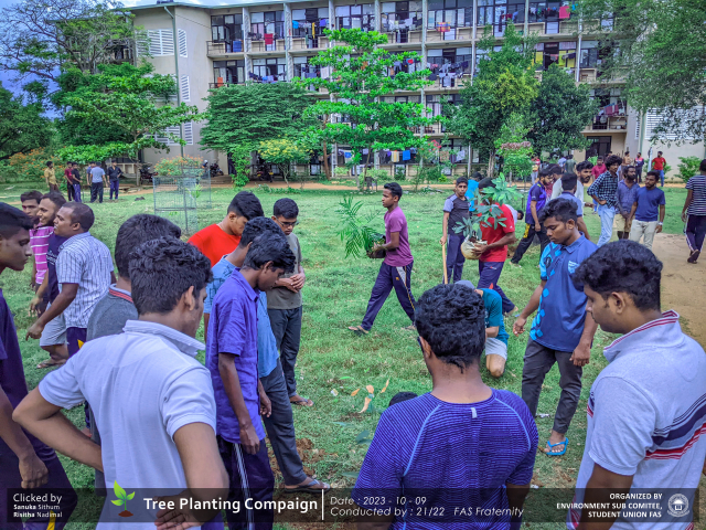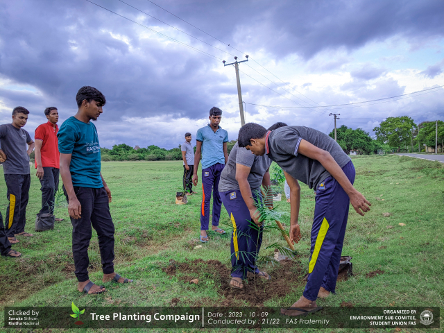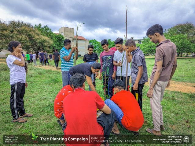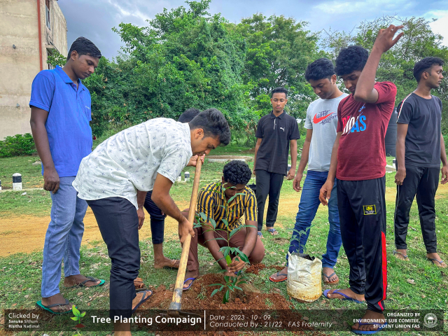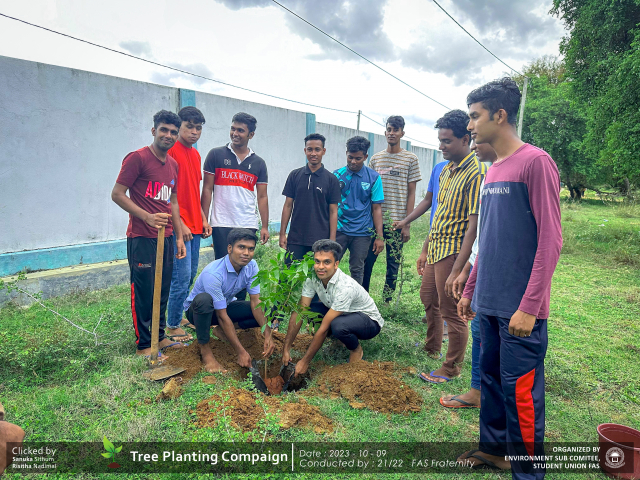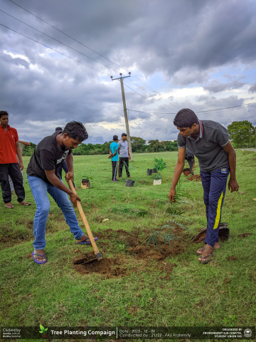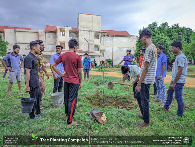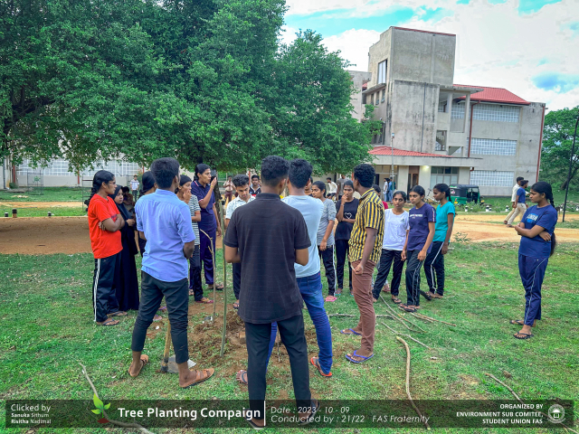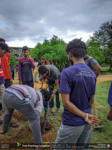A green revolution unfolded on the 9th of October 2023, as the Environment Sub-Committee of the Students’ Union at the Faculty of Applied Science, Trincomalee Campus, EUSL, spearheaded a Tree Plantation Program. This impactful campaign was a testament to our collective commitment to environmental stewardship and sustainability.