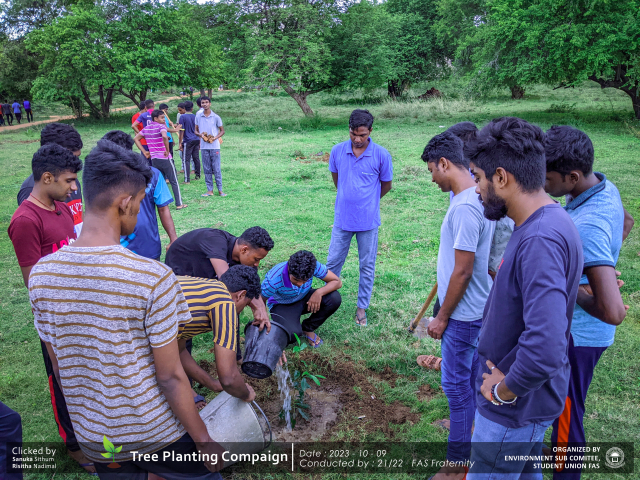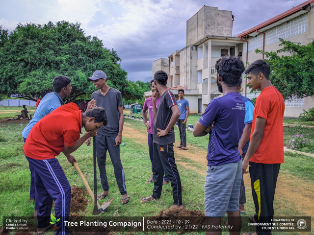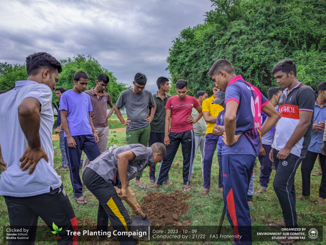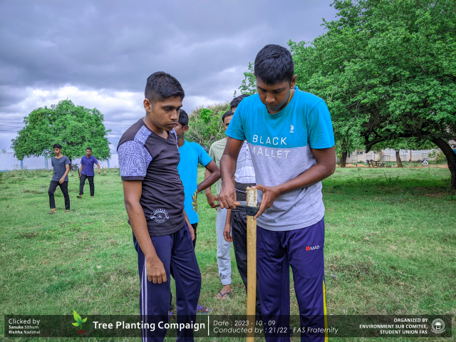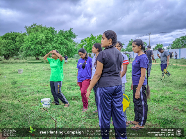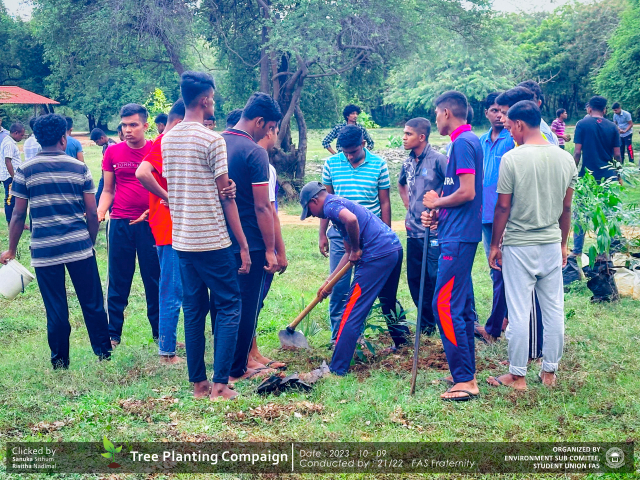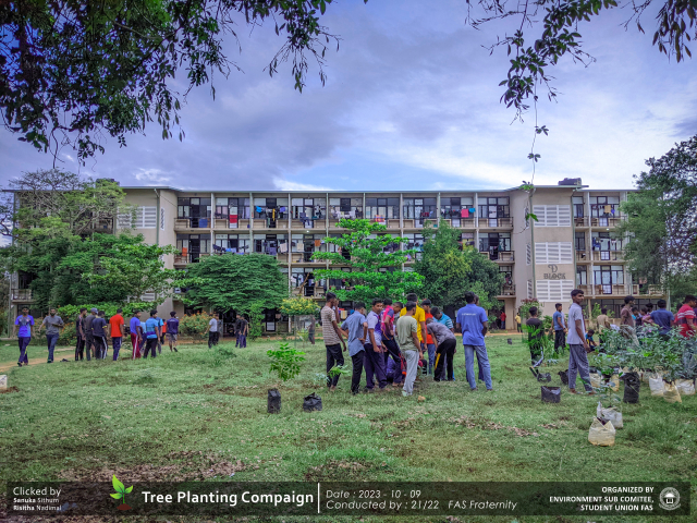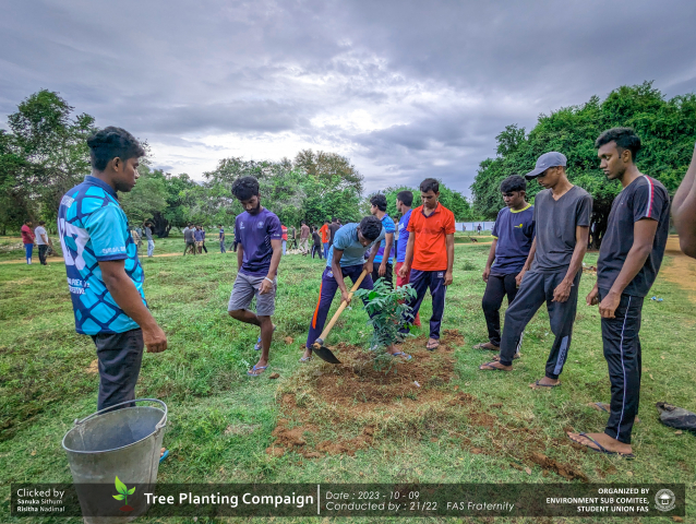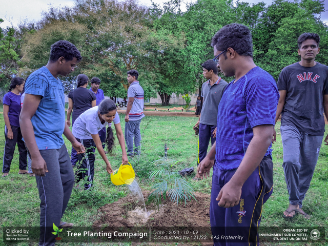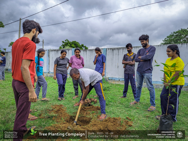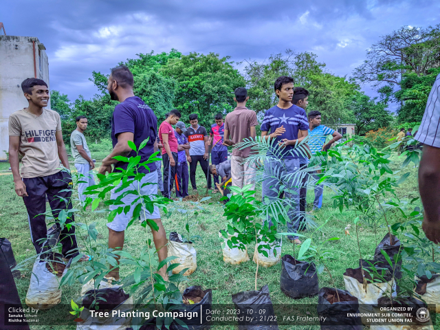 A green revolution unfolded on the 9th of October 2023, as the Environment Sub-Committee of the Students’ Union at the Faculty of Applied Science, Trincomalee Campus, EUSL, spearheaded a Tree Plantation Program. This impactful campaign was a testament to our collective commitment to environmental stewardship and sustainability.
