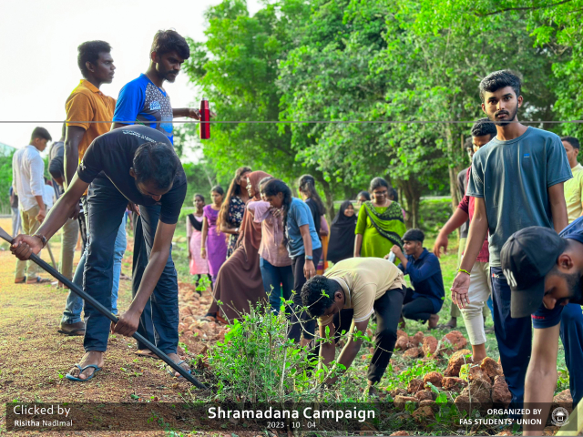 Let’s celebrate the success of the Shramadhana Campaign and cherish the memories of a day when all batches came together for a cause greater than ourselves. The Faculty of Applied Science is not just a place of learning; it’s a community dedicated to positive change.