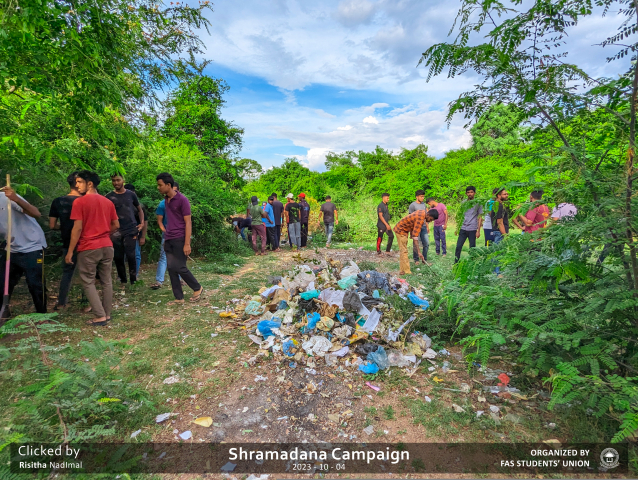 In a powerful display of unity and commitment to our environment, students from all batches joined hands for a ‘Shramadhana Campaign’ near the Faculty of Applied Science. On the 4th of October 2023, our diverse academic family came together with one shared goal – to make our campus cleaner and greener!